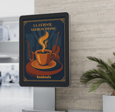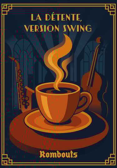 Dans ce projet, j'ai exploré l'alliance entre café et musique swing pour inviter chacun à savourer l'instant autrement. À travers des géométries Art Déco et une palette bleu nuit et or, j'ai créé une affiche singulière.