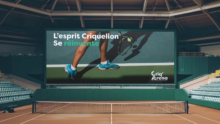Création d'une identité visuelle pour Criq'Arena, centre omnisports de Claudy Criquelion de Lessines, un projet dédié à la célébration du sport et du bien-être pour tous. Le logo devait traduire l'univers de la diversité sportive et de l'eau à travers une esthétique dynamique et fédératrice, symbolisant la fusion entre mouvement, vitalité et accessibilité des disciplines proposées, en jouant sur le contraste entre formes fluides évoquant l'élément aquatique et une structure géométrique affirmée porteuse d'un message d'énergie collective et d'inclusion sportive contemporaine.