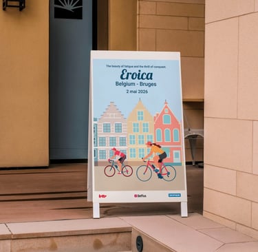 Dans ce projet, j'ai exploré l'alliance entre cyclisme rétro et esprit nostalgique pour inviter chacun à savourer la route autrement. À travers des géométries classiques et une palette sépia et bronze, j'ai créé une affiche singulière.
